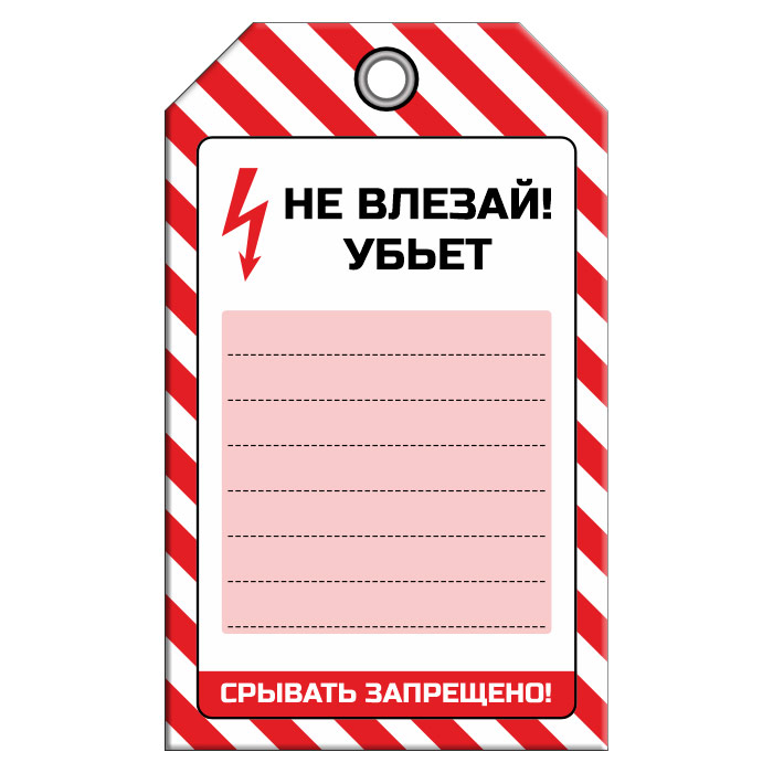 Бирка «НЕ ВЛЕЗАЙ! УБЪЕТ» (1 шт., односторонняя, пластик, 70х115 мм) в Кашире купить