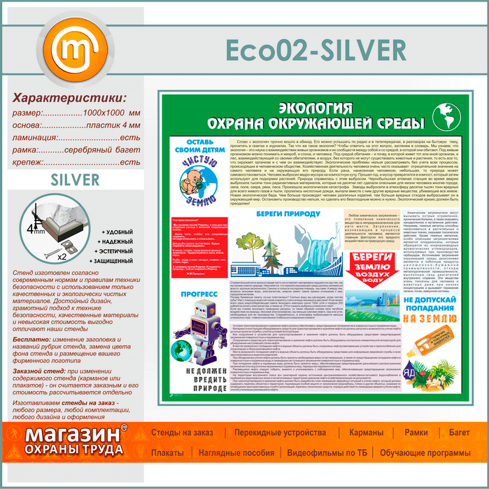 Стенд «Экология - Охрана окружающей среды» (ECO-02-SILVER) в Кашире купить