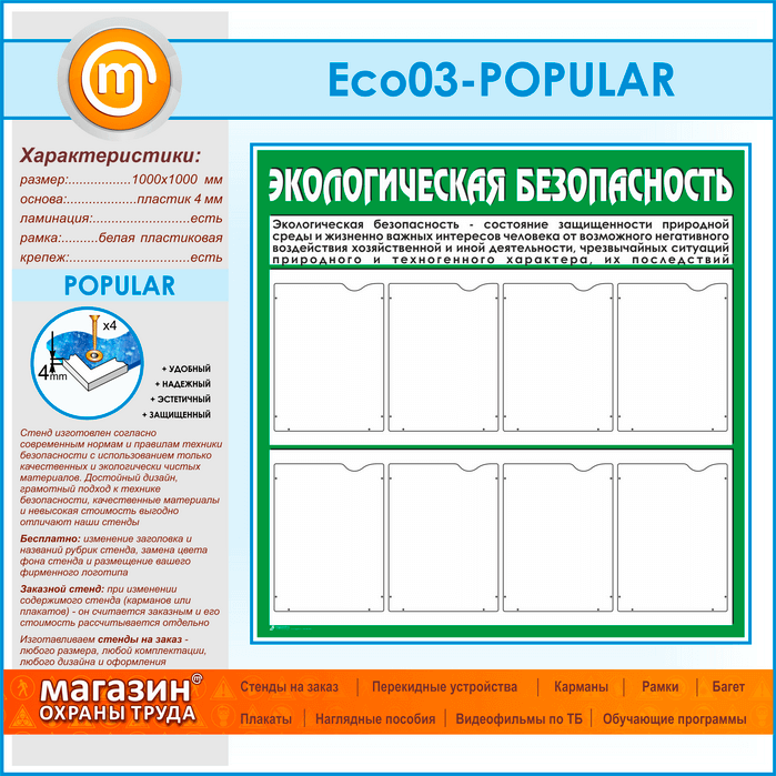 Стенд «Экологическая безопасность» с 8 карманами (ECO-03-POPULAR) в Кашире купить