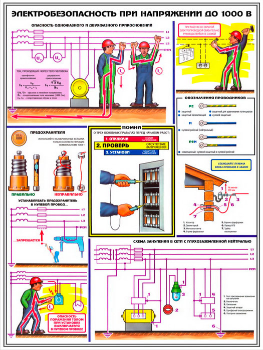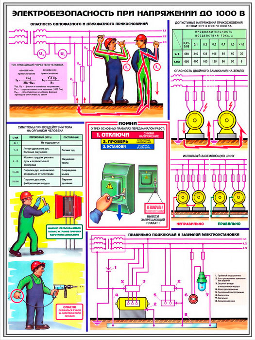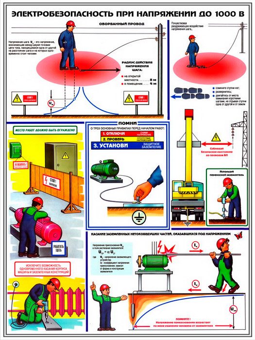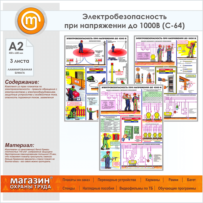 Плакаты «Электробезопасность при напряжении до 1000В» (С-64, ламинированная бумага, А2, 3 листа) в Кашире купить