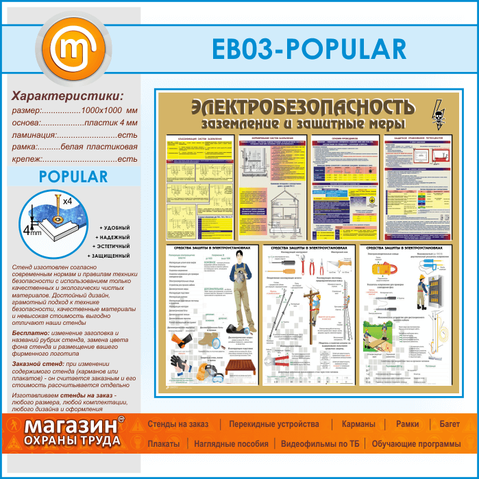 Стенд «Электробезопасность. Заземление и защитные меры» (EB-03-POPULAR) в Кашире купить
