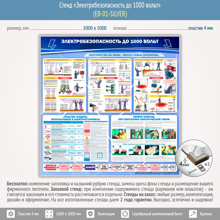 Стенд «Электробезопасность до 1000 вольт» (EB-01-SILVER) в Кашире купить