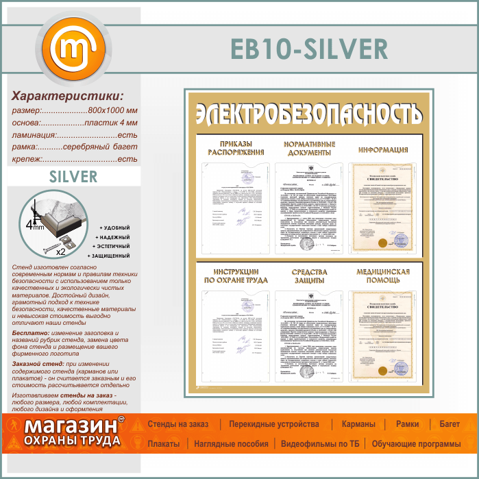 Стенд «Электробезопасность» с 6 карманами (EB-10-SILVER) в Кашире купить
