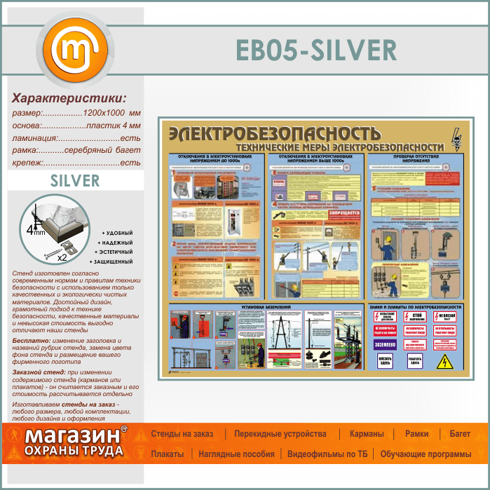 Стенд «Электробезопасность. Технические меры электробезопасности» (EB-05-SILVER) в Кашире купить