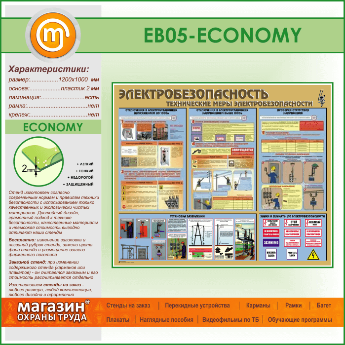 Стенд «Электробезопасность. Технические меры электробезопасности» (EB-05-ECONOMY) в Кашире купить