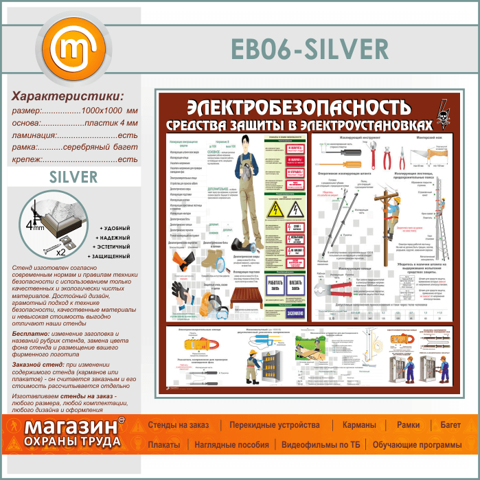 Стенд «Электробезопасность. Средства защиты в электроустановках» (EB-06-SILVER) в Кашире купить