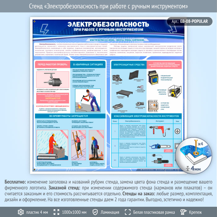 Стенд «Электробезопасность при работе с ручным инструментом» (EB-08-POPULAR) в Кашире купить