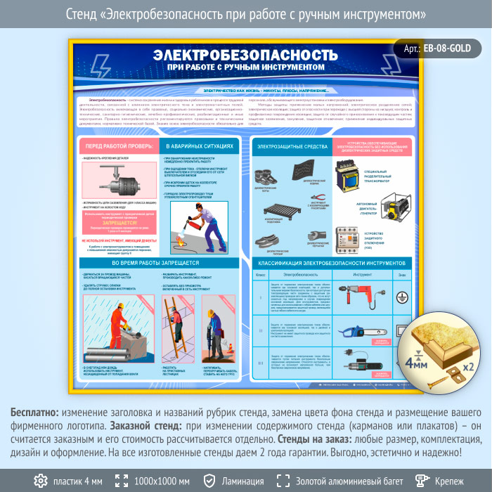 Стенд «Электробезопасность при работе с ручным инструментом» (EB-08-GOLD) в Кашире купить