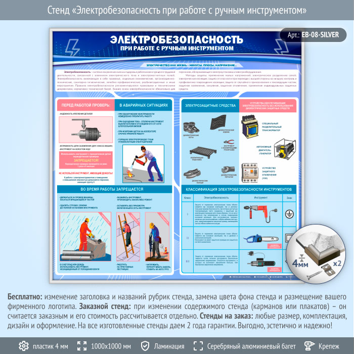 Стенд «Электробезопасность при работе с ручным инструментом» (EB-08-SILVER) в Кашире купить