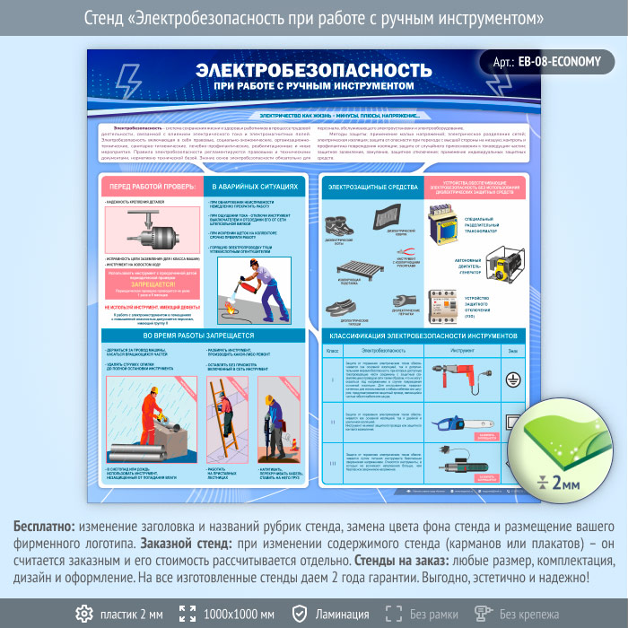 Стенд «Электробезопасность при работе с ручным инструментом» (EB-08-ECONOMY) в Кашире купить