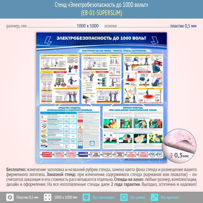Стенд «Электробезопасность до 1000 вольт» (EB-01-SUPERSLIM) в Кашире купить