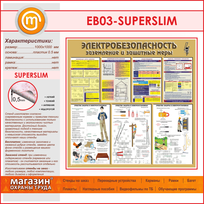 Стенд «Электробезопасность. Заземление и защитные меры» (EB-03-SUPERSLIM) в Кашире купить