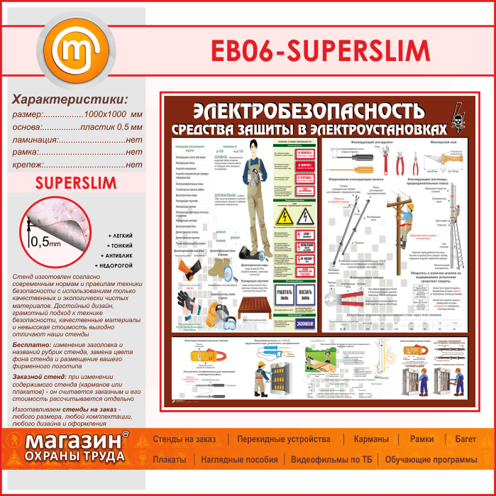 Стенд «Электробезопасность. Средства защиты в электроустановках» (EB-06-SUPERSLIM) в Кашире купить