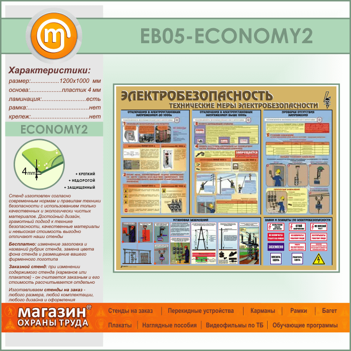 Стенд «Электробезопасность. Технические меры электробезопасности» (EB-05-ECONOMY2) в Кашире купить