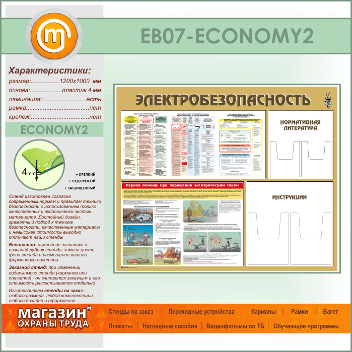 Стенд «Электробезопасность» с 4 объемными карманами (EB-07-ECONOMY2) в Кашире купить