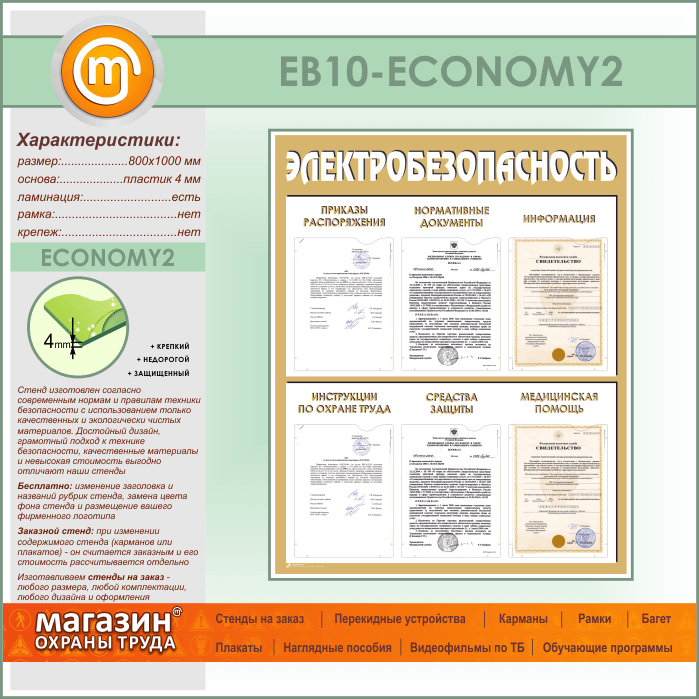 Стенд «Электробезопасность» с 6 карманами (EB-10-ECONOMY2) в Кашире купить