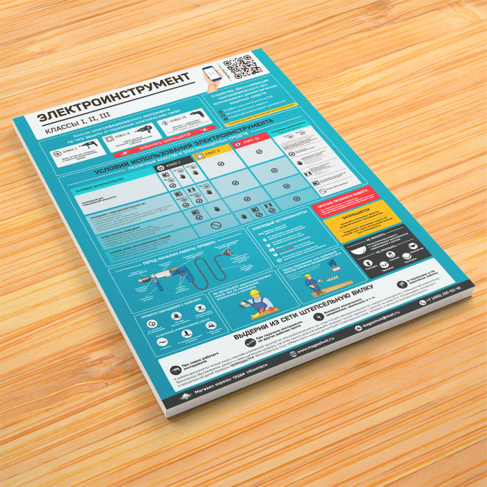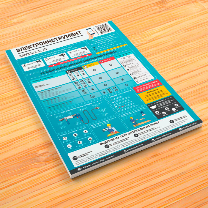 Плакат «Электроинструмент - электробезопасность» (М-66, ламинированная бумага, А2, 1 лист) в Кашире купить