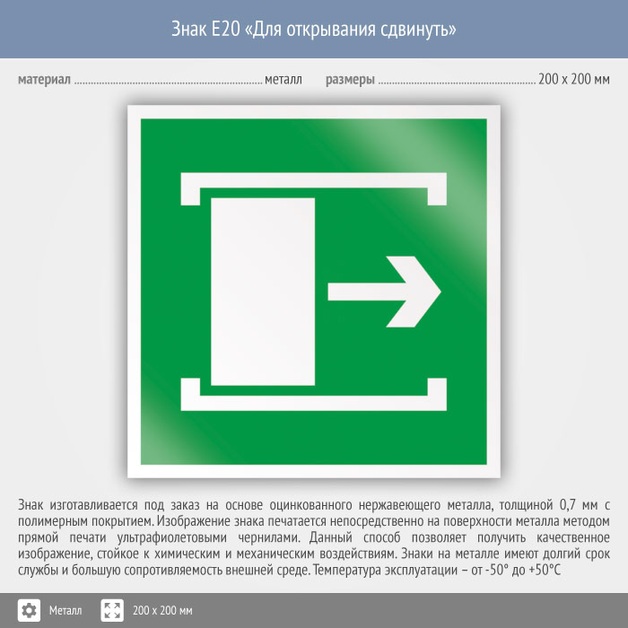 Знак E20 «Для открывания сдвинуть» (металл, 200х200 мм) в Кашире купить