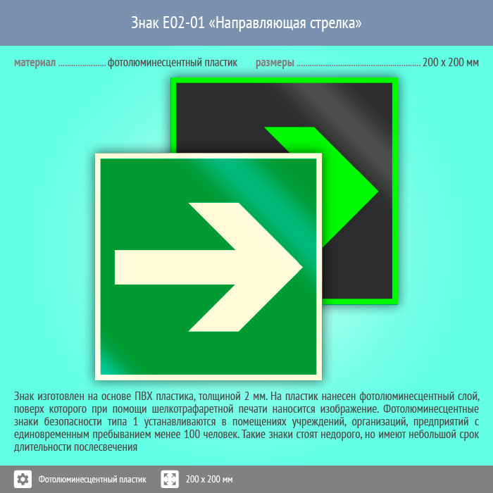 Знак E02-01 «Направляющая стрелка» (фотолюминесцентный пластик, 200х200 мм) в Кашире купить
