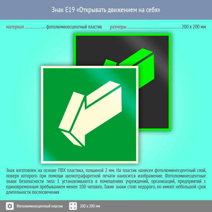 Знак E19 «Открывать движением на себя» (фотолюминесцентный пластик, 200х200 мм) в Кашире купить