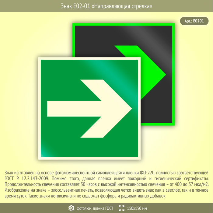 Знак E02-01 «Направляющая стрелка» (фотолюминесцентная пленка ГОСТ 34428-2018, 150х150 мм) в Кашире купить
