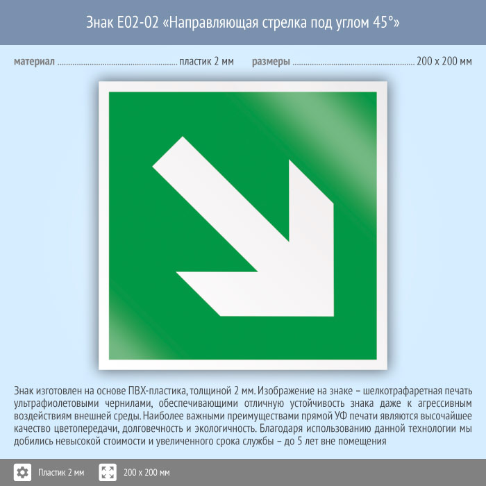 Знак E02-02 «Направляющая стрелка под углом 45°» (пластик, 200х200 мм) в Кашире купить