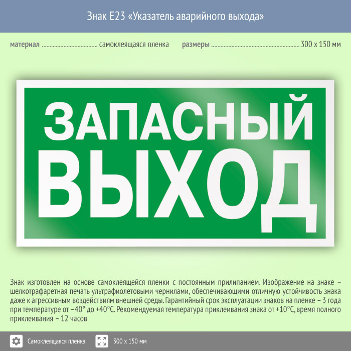 Знак E23 «Указатель запасного выхода» (устаревший) (пленка, 300х150 мм) в Кашире купить