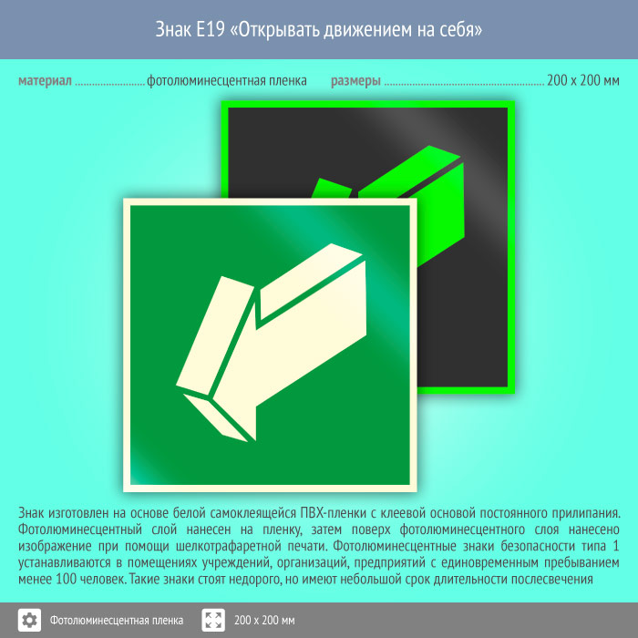 Знак E19 «Открывать движением на себя» (фотолюминесцентная пленка, 200х200 мм) в Кашире купить