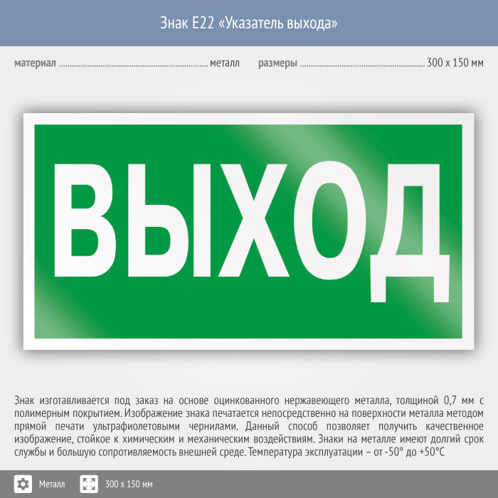 Знак E22 «Указатель выхода» (металл, 300х150 мм) в Кашире купить