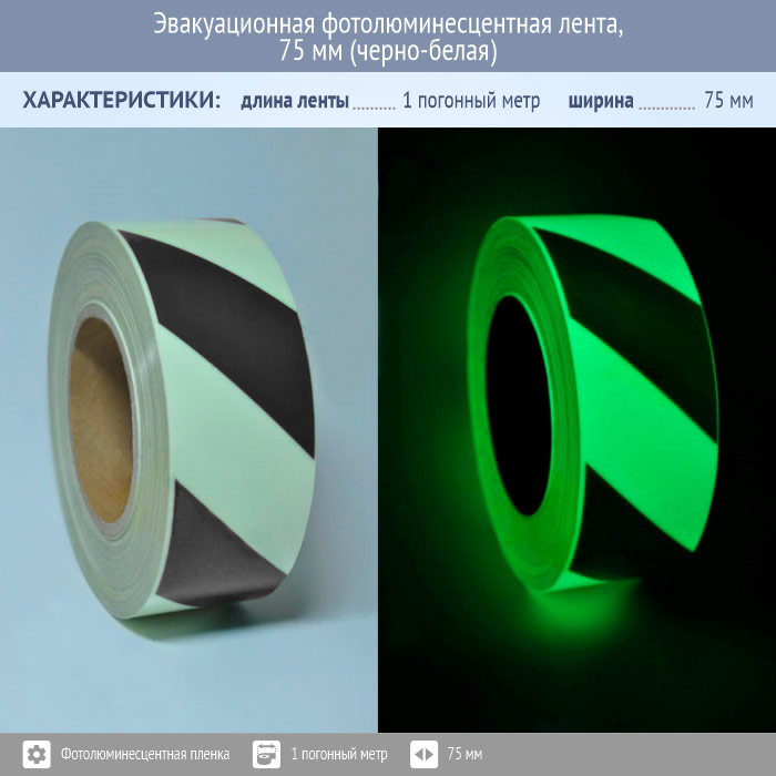 Эвакуационная фотолюминесцентная лента, 75 мм (черно-белая) в Кашире купить