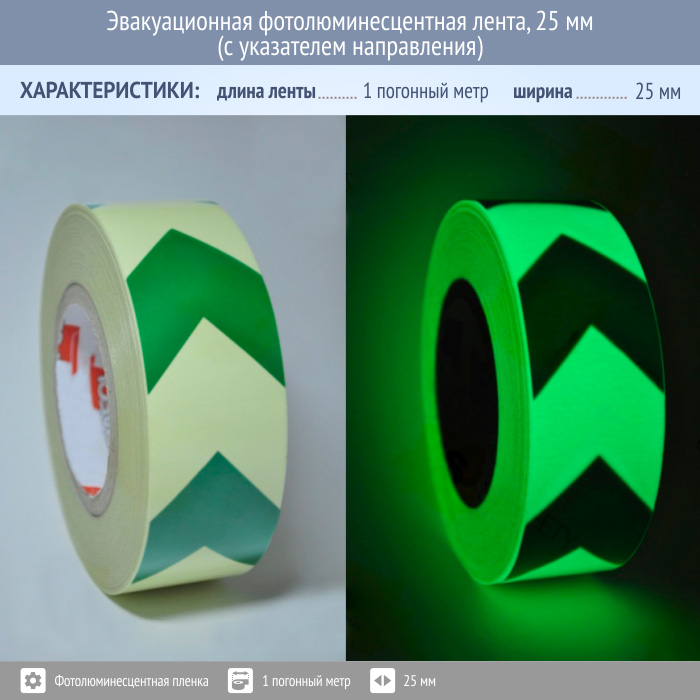 Эвакуационная фотолюминесцентная лента, 25 мм (с указателем направления) в Кашире купить