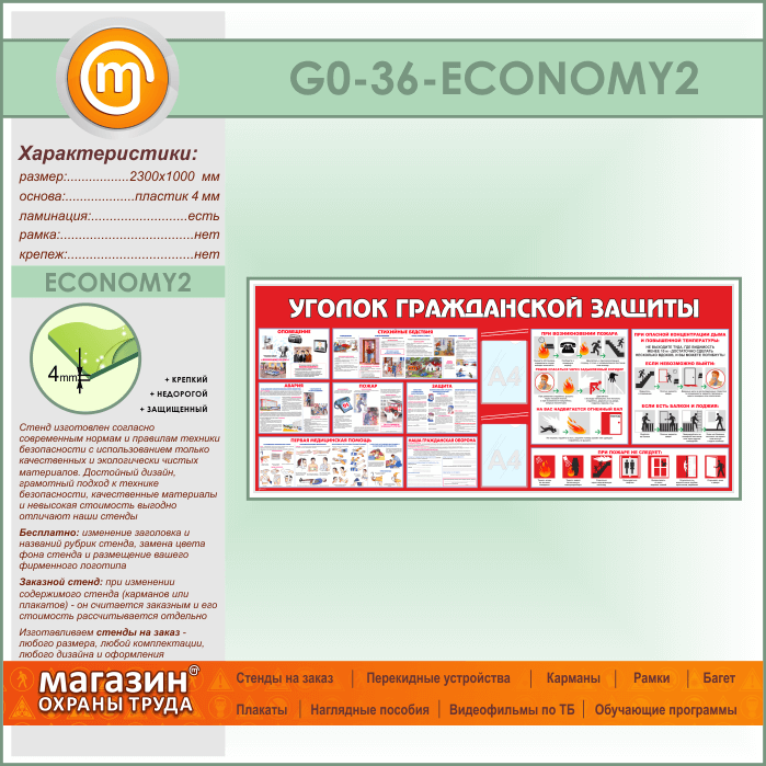 Стенд «Уголок гражданской защиты» c 2 карманами (GO-36-ECONOMY2) в Кашире купить