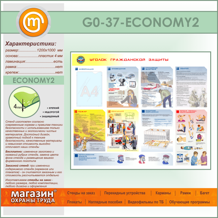 Стенд «Уголок гражданской защиты» с карманом (GO-37-ECONOMY2) в Кашире купить