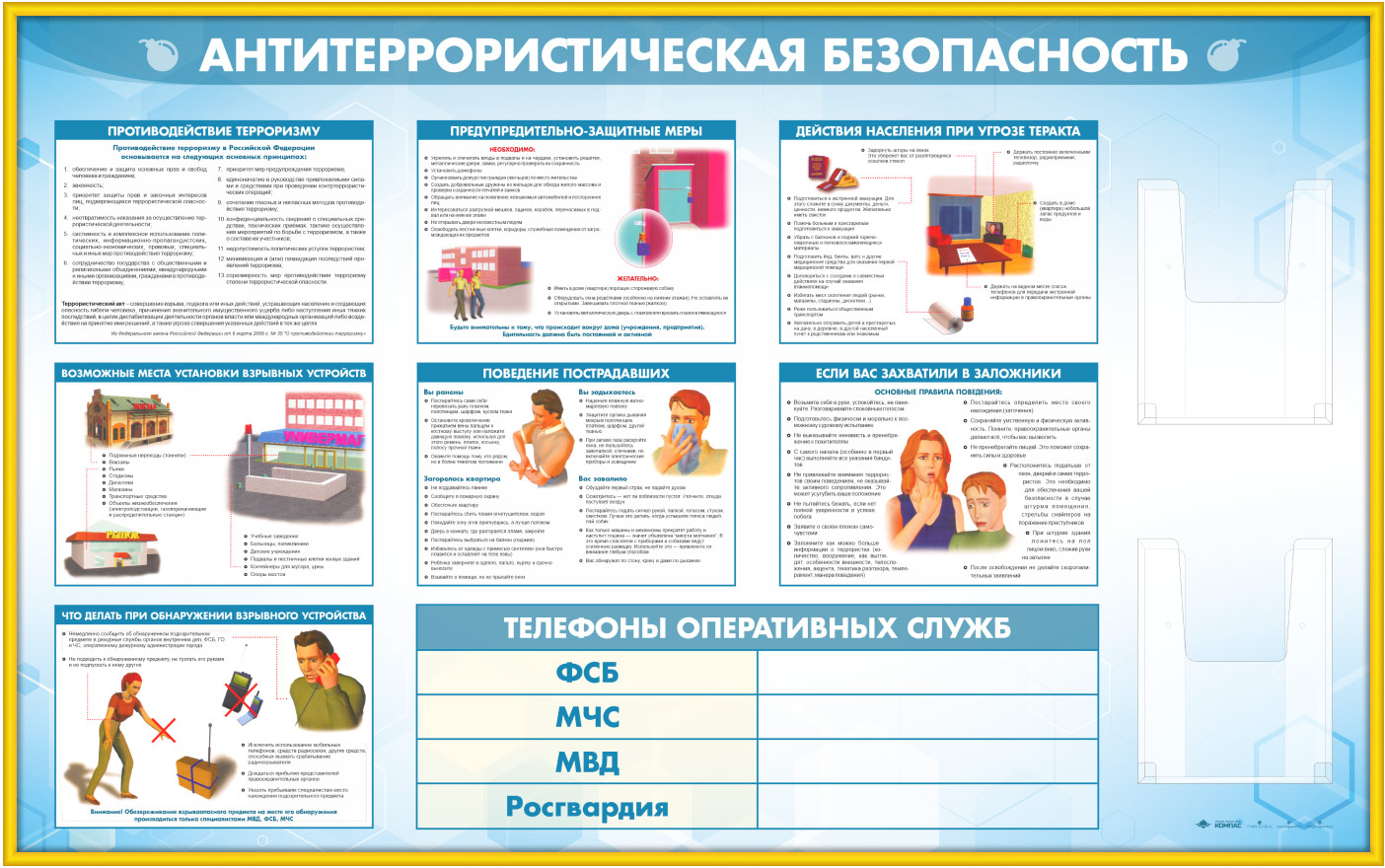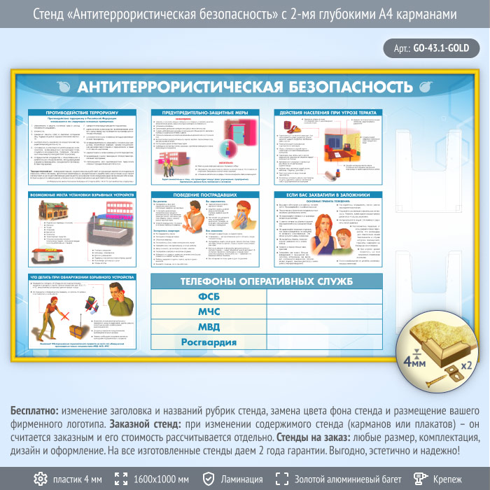 Стенд «Антитеррористическая безопасность» с 2-мя глубокими А4 карманами (GO-43.1-GOLD) в Кашире купить