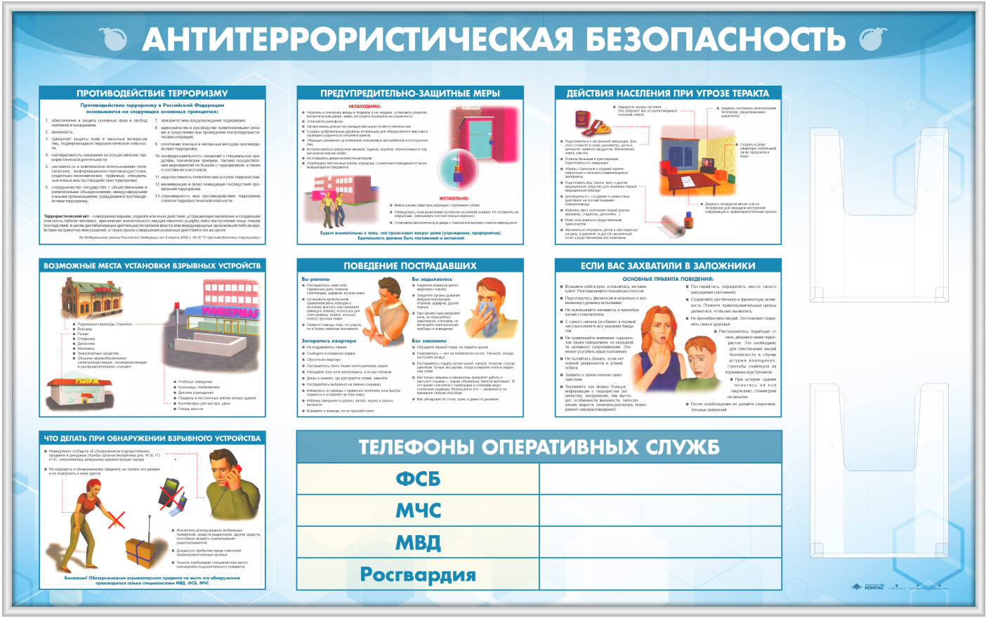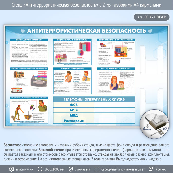 Стенд «Антитеррористическая безопасность» с 2-мя глубокими А4 карманами (GO-43.1-SILVER) в Кашире купить