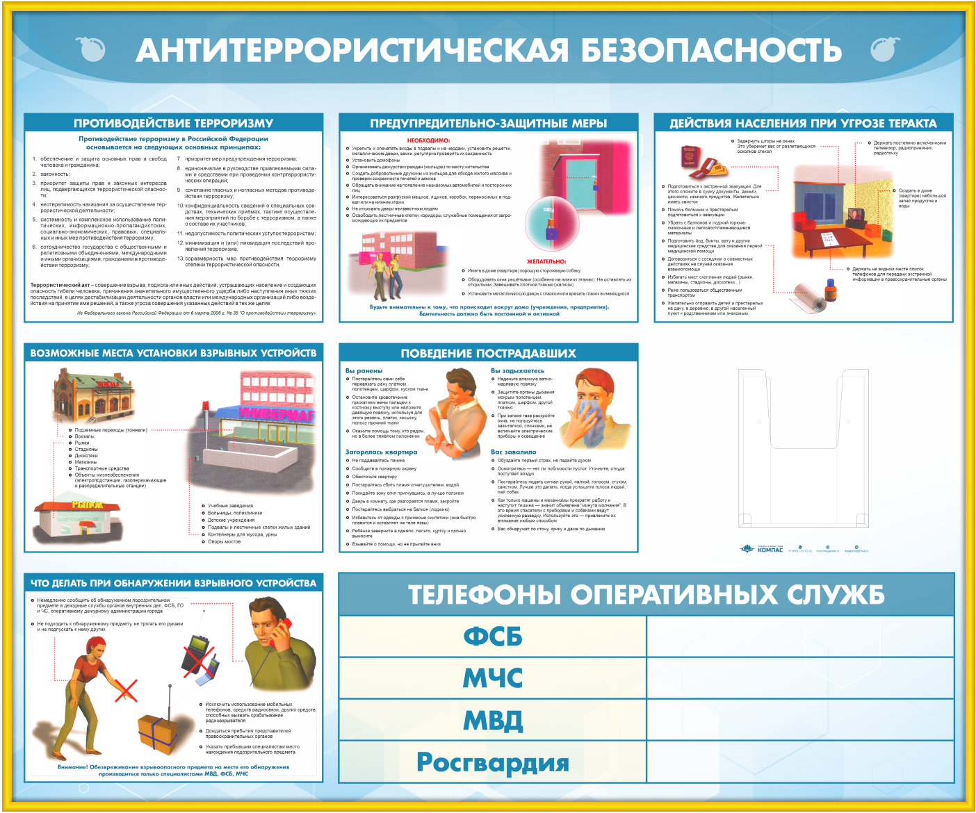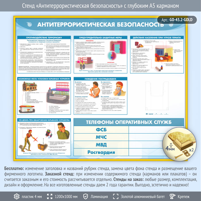 Стенд «Антитеррористическая безопасность» с глубоким А5 карманом (GO-43.2-GOLD) в Кашире купить