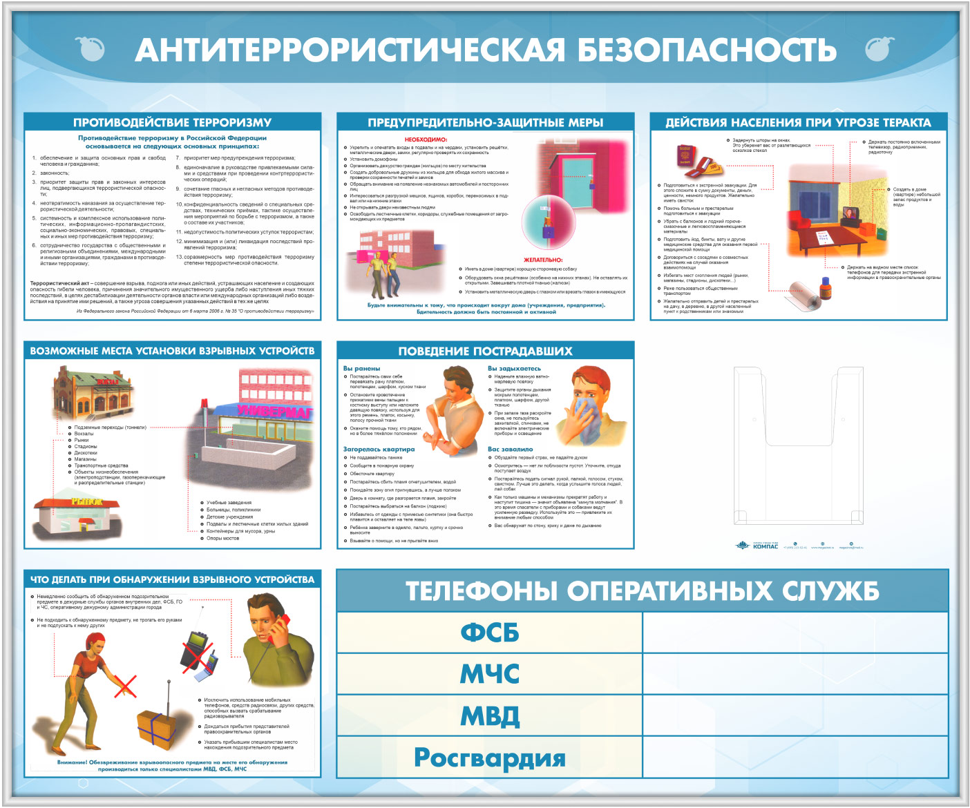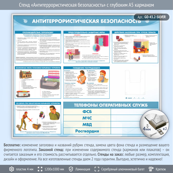 Стенд «Антитеррористическая безопасность» с глубоким А5 карманом (GO-43.2-SILVER) в Кашире купить