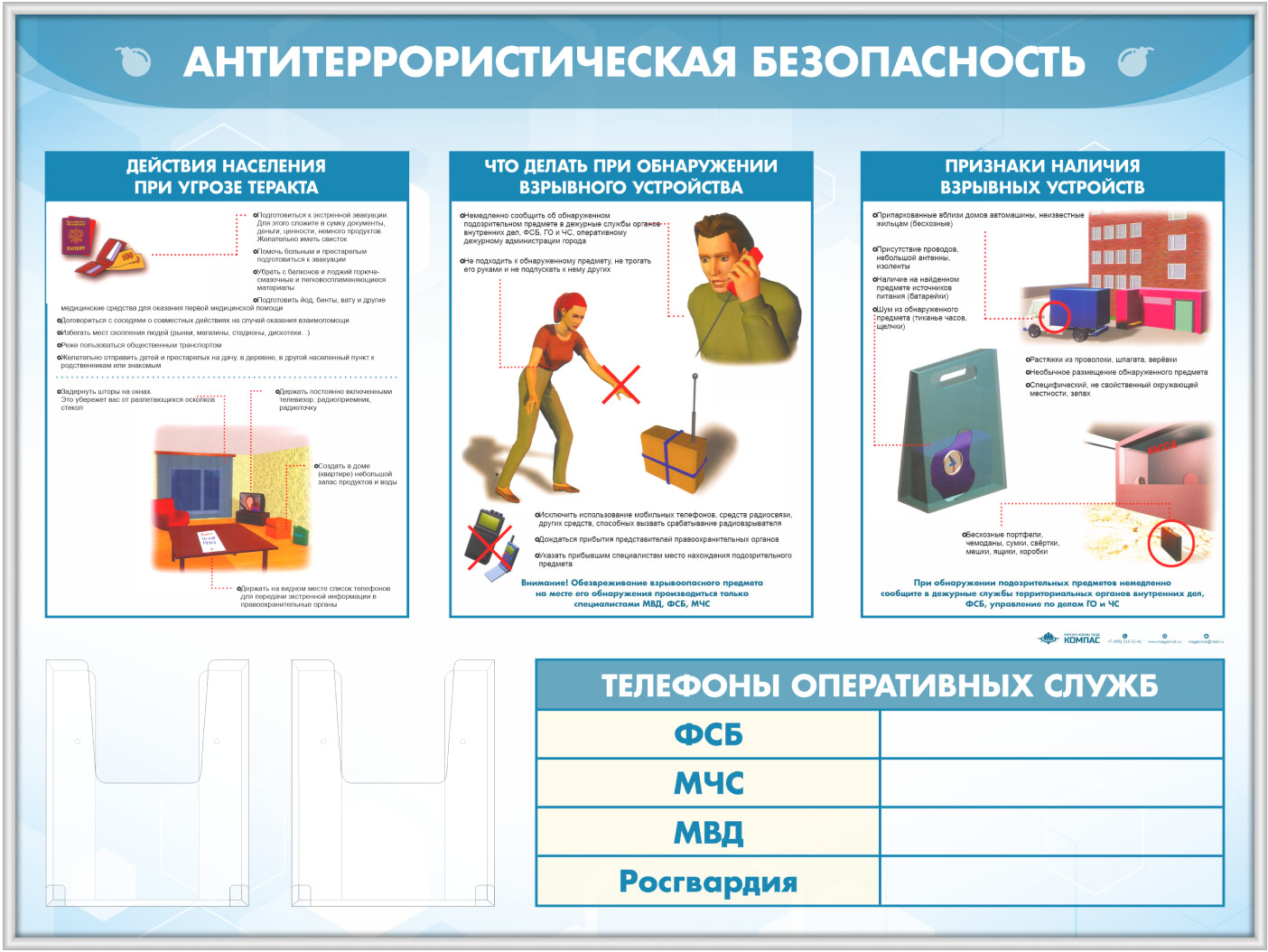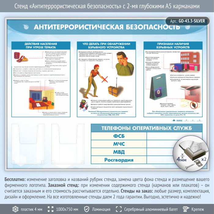 Стенд «Антитеррористическая безопасность» с 2-мя глубокими А5 карманами (GO-43.3-SILVER) в Кашире купить