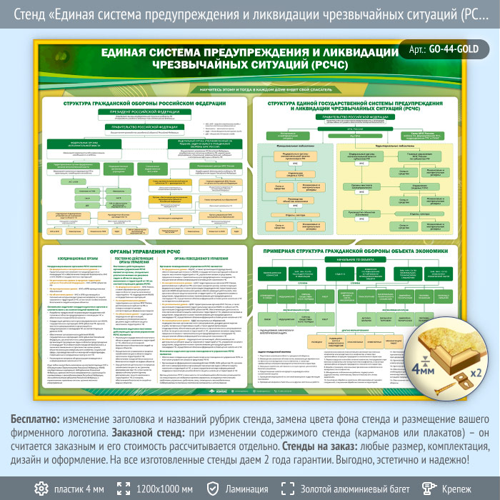 Стенд «Единая система предупреждения и ликвидации чрезвычайных ситуаций (РСЧС)» (GO-44-GOLD) в Кашире купить