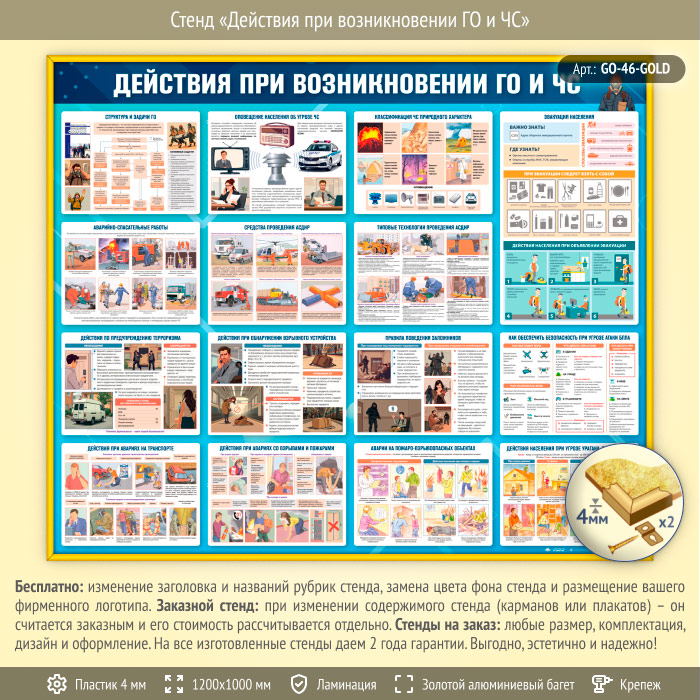 Стенд «Действия при возникновении ГО и ЧС» (GO-46-GOLD) в Кашире купить