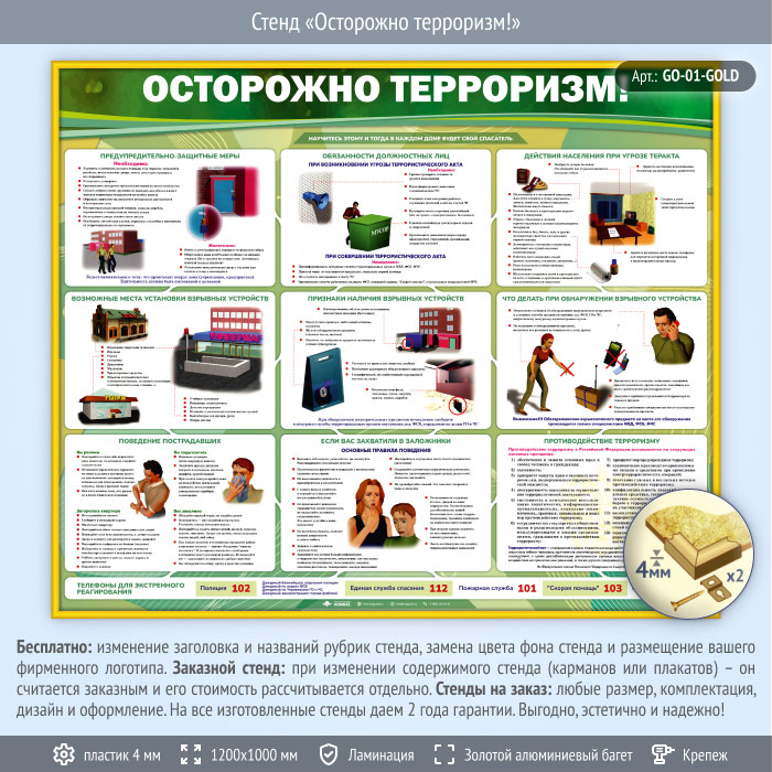 Стенд «Осторожно терроризм!» (GO-01-GOLD) в Кашире купить