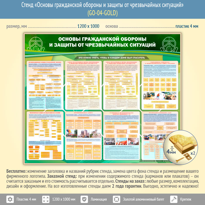 Стенд «Основы гражданской обороны и защиты от чрезвычайных ситуаций» (GO-04-GOLD) в Кашире купить