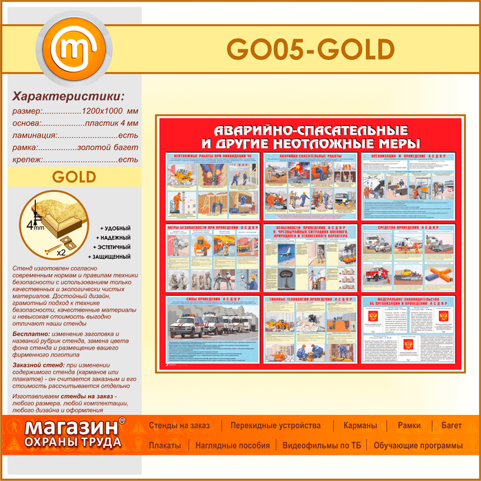 Стенд «Аварийно-спасательные и другие неотложные меры» (GO-05-GOLD) в Кашире купить