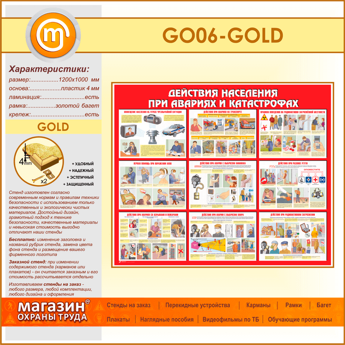 Стенд «Действия населения при авариях и катастрофах» (GO-06-GOLD) в Кашире купить