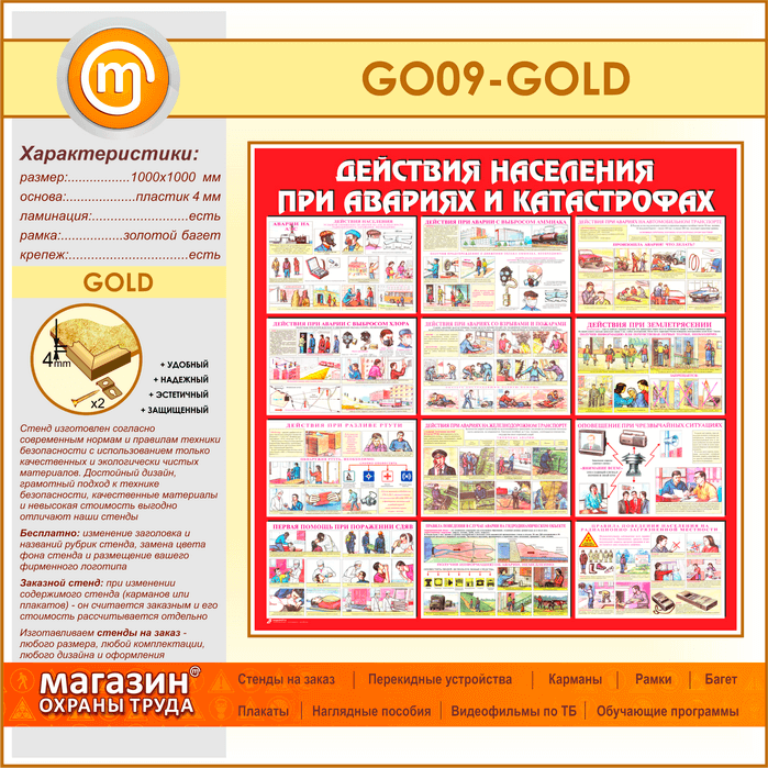 Стенд «Действия населения при авариях и катастрофах» (GO-09-GOLD) в Кашире купить