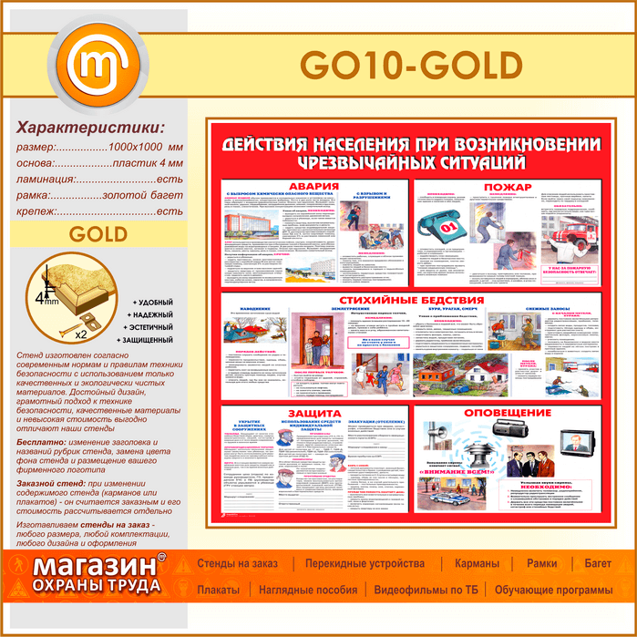 Стенд «Действия населения при возникновении чрезвычайных ситуаций» (GO-10-GOLD) в Кашире купить