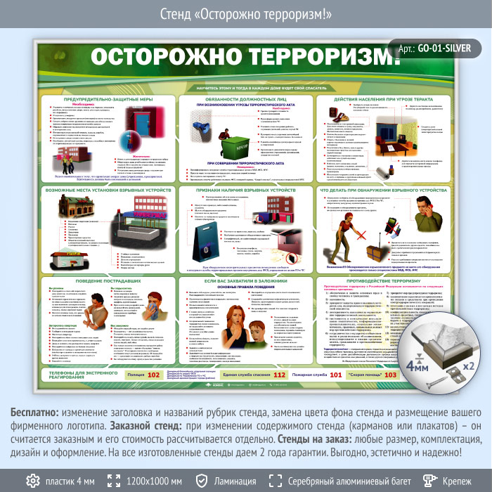 Стенд «Осторожно терроризм!» (GO-01-SILVER) в Кашире купить
