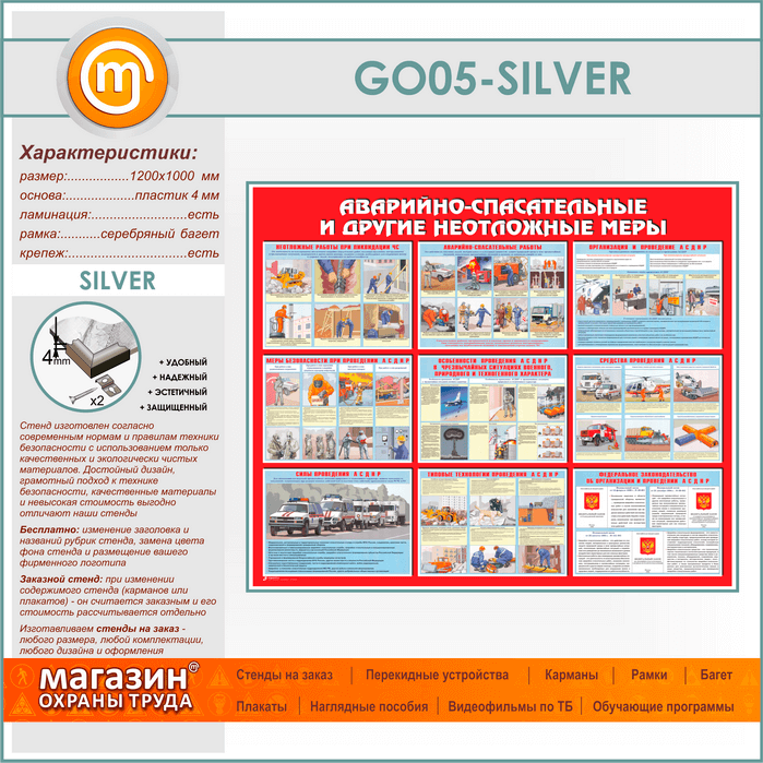 Стенд «Аварийно-спасательные и другие неотложные меры» (GO-05-SILVER) в Кашире купить