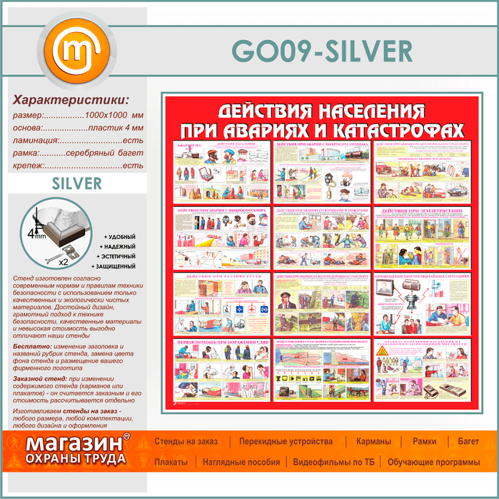 Стенд «Действия населения при авариях и катастрофах» (GO-09-SILVER) в Кашире купить