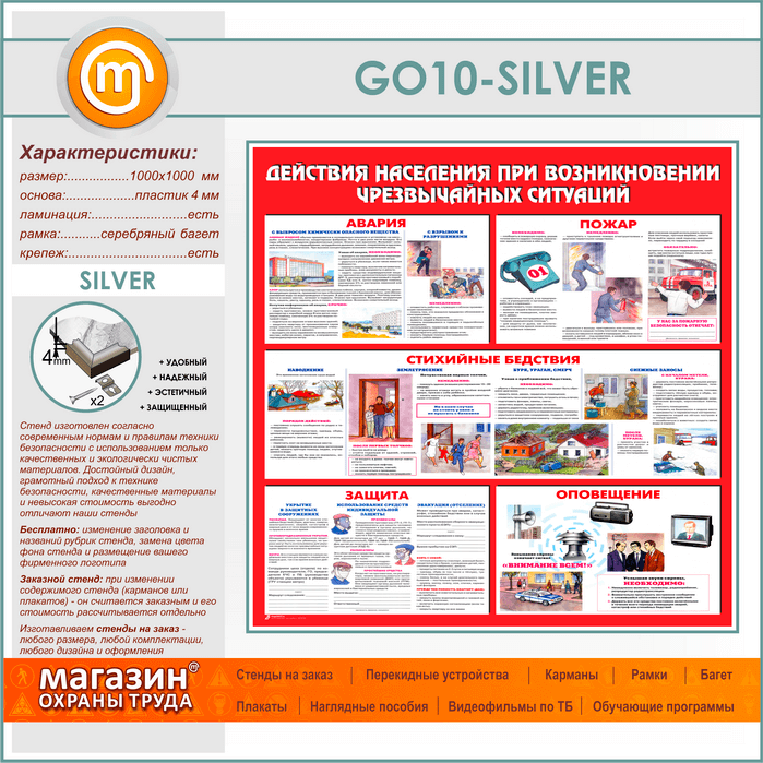 Стенд «Действия населения при возникновении чрезвычайных ситуаций» (GO-10-SILVER) в Кашире купить